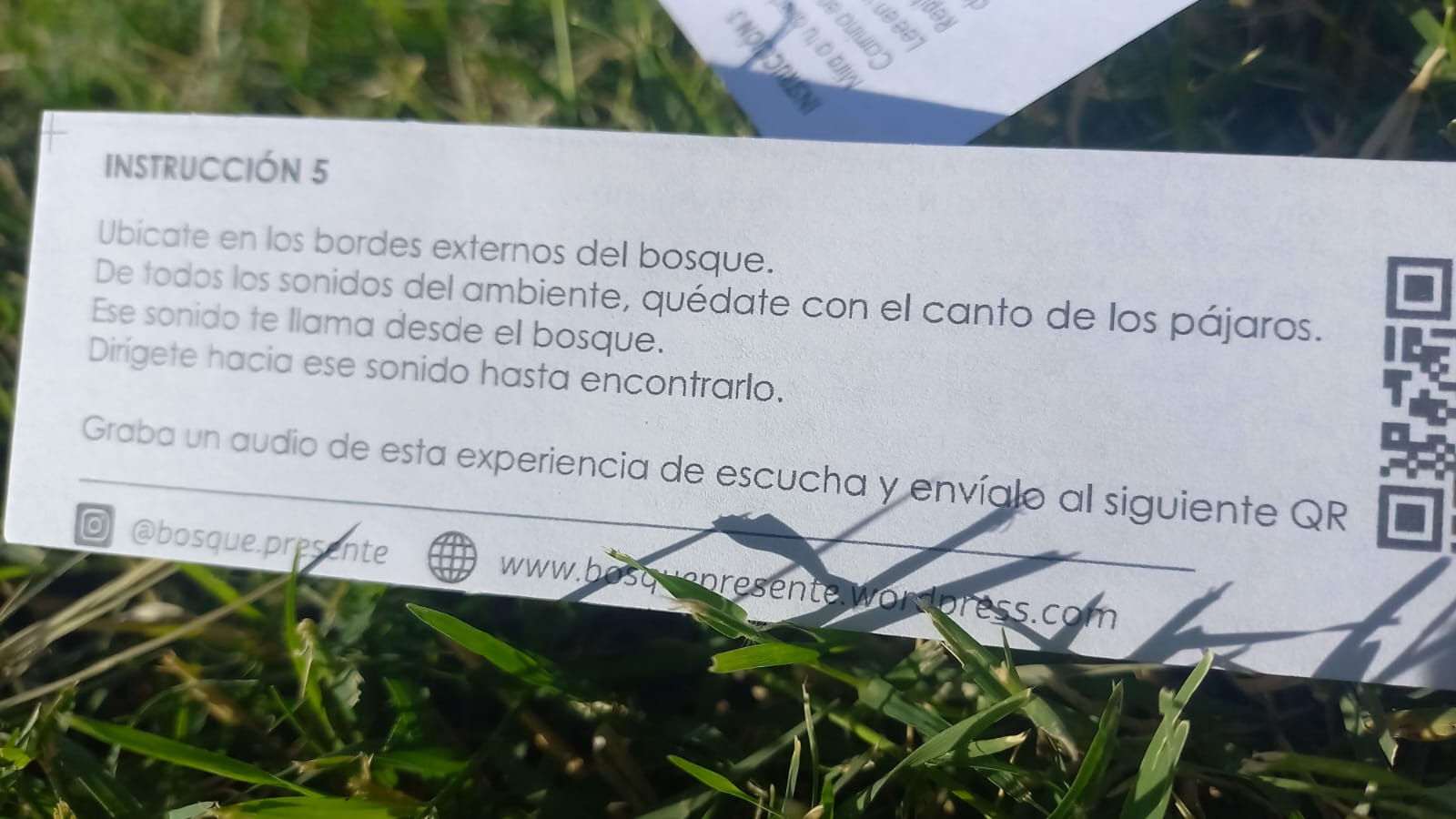 Escucharemos un fragmento del paisaje sonoro «Al azar hacer sonar un nombre junto al otro», compuesto a partir de registros fonográficos que el público realizó con sus celulares en el Bosque de la memoria. Las voces y el sonido ambiente que escucharemos, corresponden al Volumen 2 del Taller de escucha y composición Escuchar desde la Trascendencia realizado durante la tardecita del 2 de Noviembre del 2023.